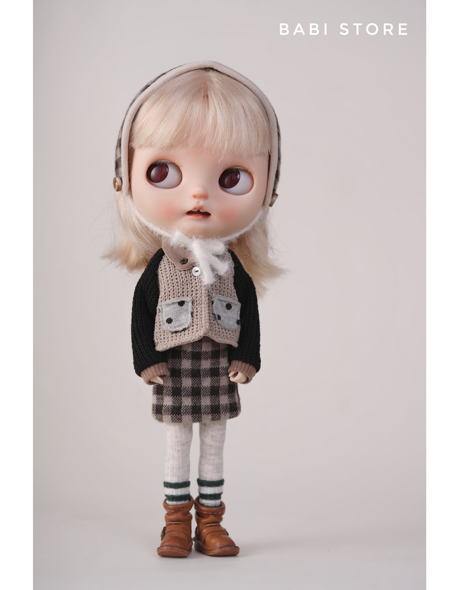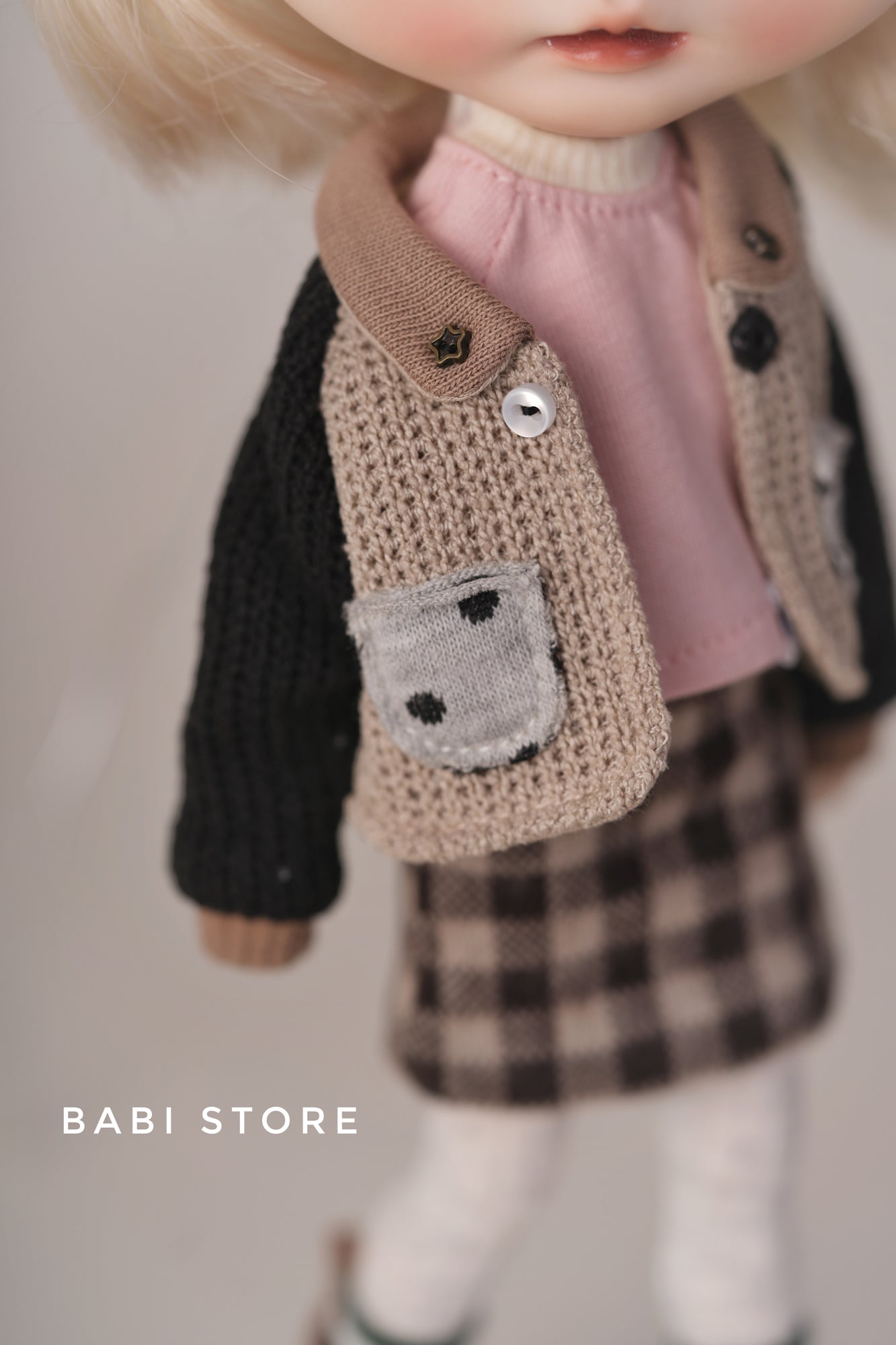 This outfit is designed to fit Blythe dolls. Recommended bodies: Obitsu 22cm or Azone S Body.